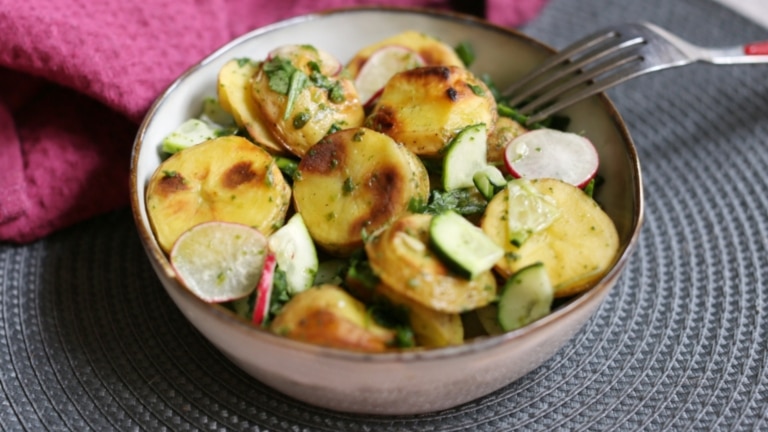 Les petits cubes de pommes de terre, les oignons doux et les nombreuses herbes fraîches font de ce plat un délice.