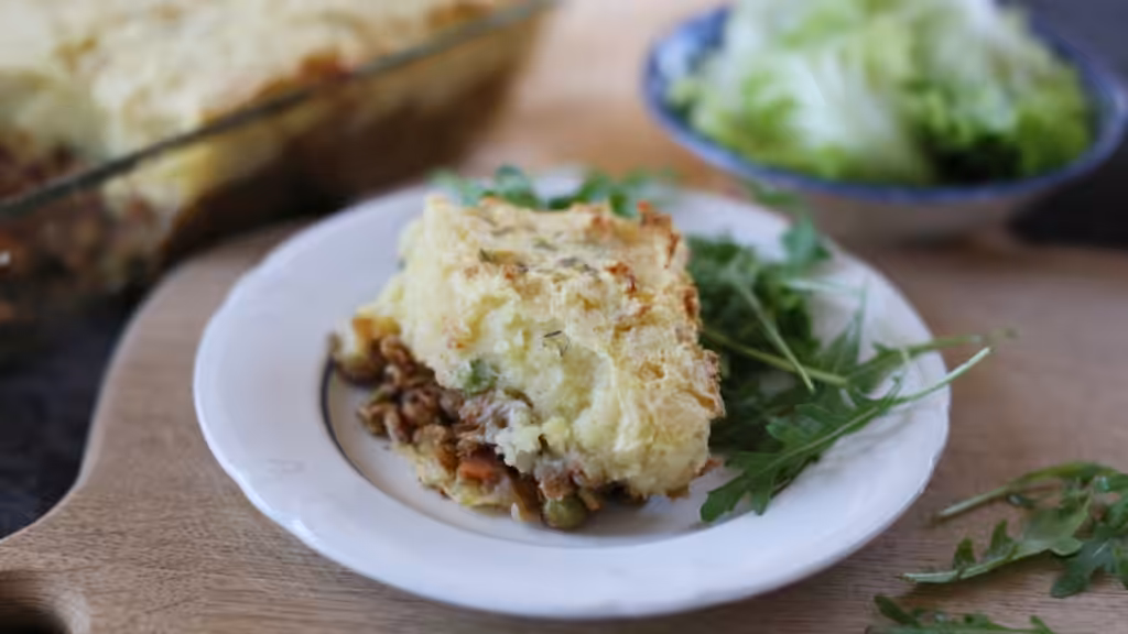 For the filling, sauté the onion cubes in a wide saucepan for 3 to 5 minutes, if necessary adding a little water to prevent them from burning. Add the garlic, celery and carrots and cook for another 5 minutes until lightly browned. Next, add the lentils, stock, tomato paste and spices to the pot and simmer, covered, for 30 to 35 minutes until the lentils are soft. Add the peas in the last 5 minutes.