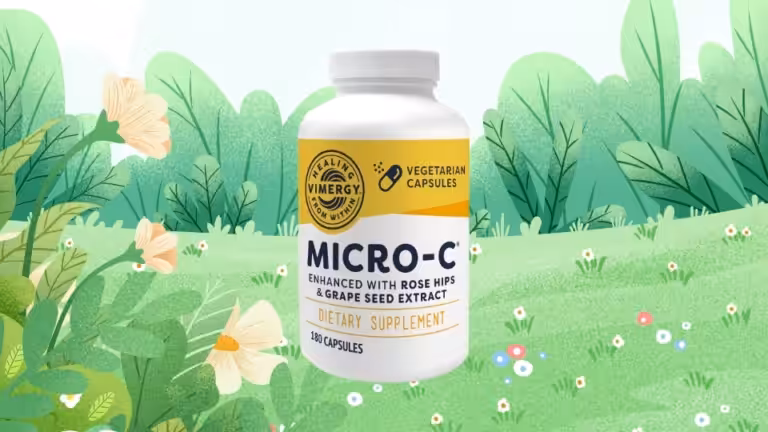 Micro C Vimergy® is a special blend of buffered vitamin C that is more easily digestible than other forms of vitamin C. This unique blend is enriched with rose hips, grape seed extract, rutin and acerola fruit extract. Vitamin C is an essential antioxidant that supports a healthy immune system, cardiovascular system and skin health.