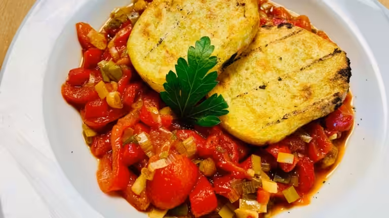 Patatas picantes con pepino en salsa de tomate y mostaza