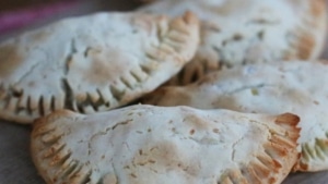 Mit einer Gabel Löcher in die Auberginen stechen und die Auberginen auf ein mit Backpapier ausgelegtes Backblech geben. Die Knoblauchzehen mit auf das Backblech legen, eventuell aber schon früher entnehmen. Bei 200 °C für ca. 45 Minuten backen und dann etwas abkühlen lassen.