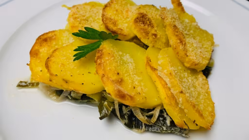 Enfin, saupoudrez le tout de poudre d’amandes et faites cuire au four préchauffé à 230 degrés pendant environ 40 à 45 minutes jusqu’à ce qu’ils soient dorés. Le liquide aurait dû presque s’évaporer. Laissez ensuite reposer le gratin 10 minutes, puis servez.