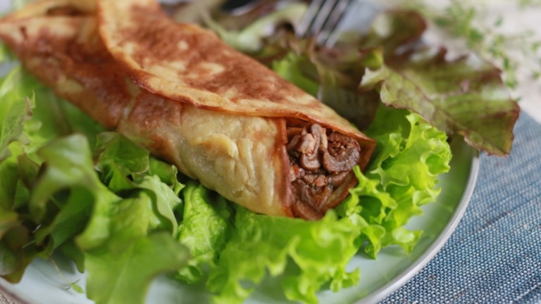 Étalez la garniture aux champignons sur les wraps et pliez-les soigneusement ensemble.