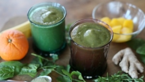 - 2 Bananen oder 2 Tassen Mango oder 1/2 Liter frisch gepresster Orangensaft
