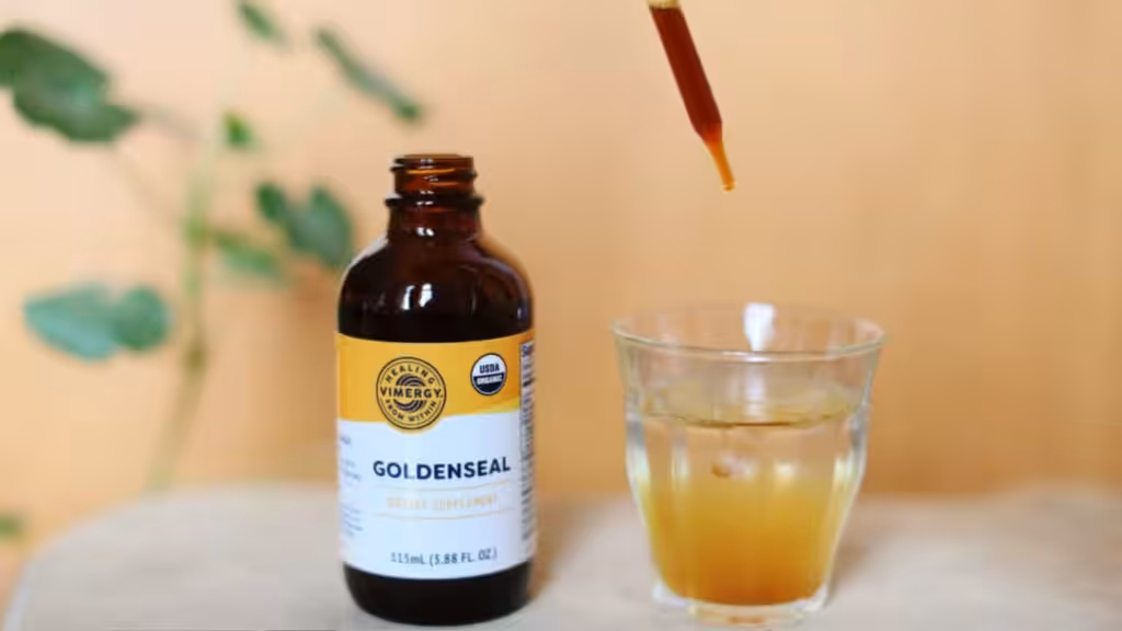 - Erwachsene nehmen alle vier Stunden nach dem Aufwachen 6 Pipetten der alkoholfreien Goldensealtinktur in mindestens 30 ml Wasser oder Saft (oder direkt in den Mund, wahlweise mit einem Saft- oder Wasserzusatz).