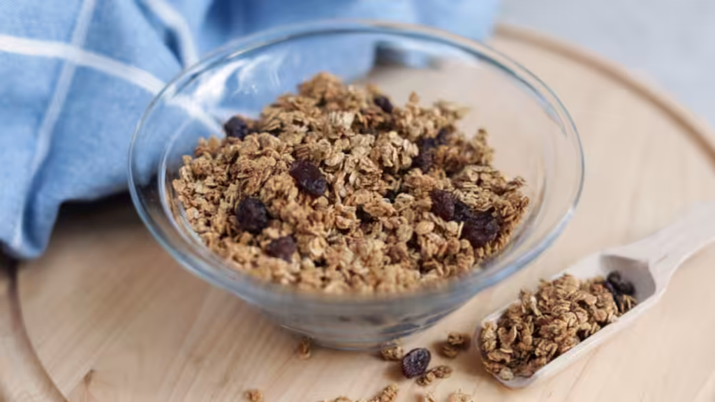 Mescolare uniformemente tutti gli ingredienti, tranne l’uvetta, in una ciotola.