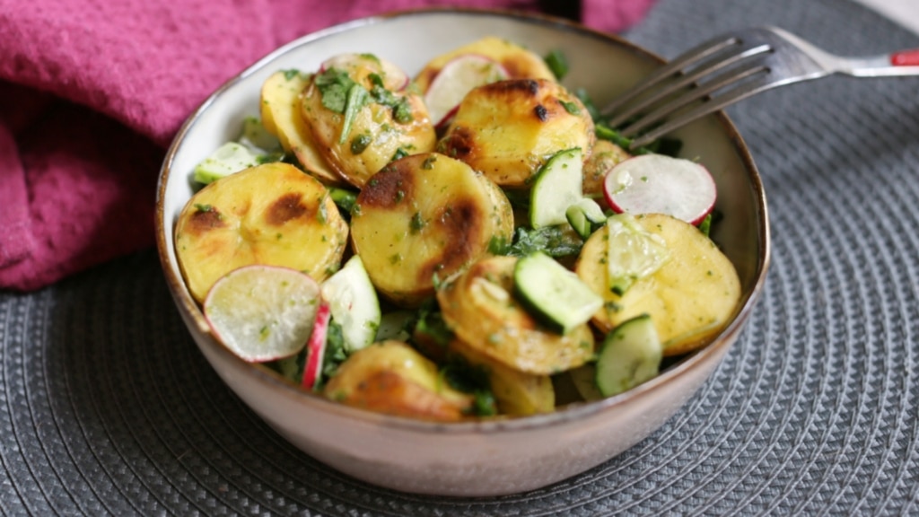 Patate piccanti con cetriolo in salsa di pomodoro e senape