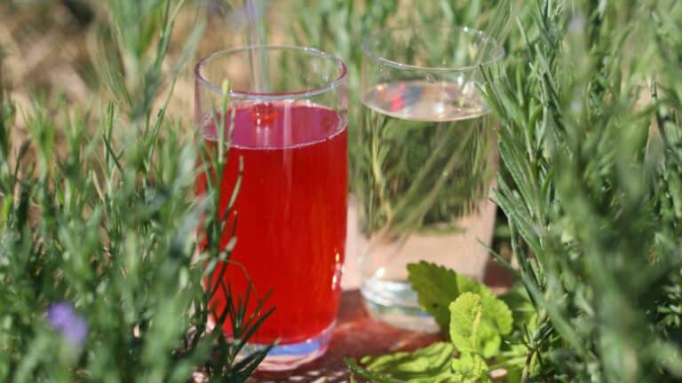 Aggiungi 3–4 rametti di melissa a un bicchiere di acqua filtrata. Puoi anche tagliare i rami piccoli, così da poter estrarre ancora più ingredienti. Quindi posizionare il bicchiere al sole per alcune ore. Più a lungo rimane al sole, più diventa scuro Acqua solare alle erbe.