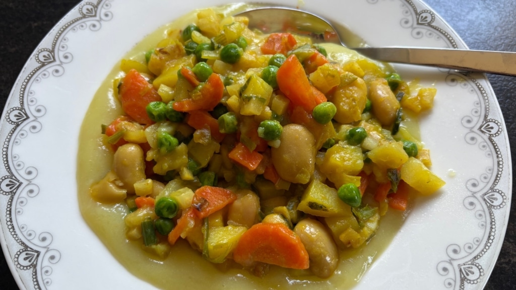 Pfan­nen­ge­mü­se auf Kartoffelpüree-Bett