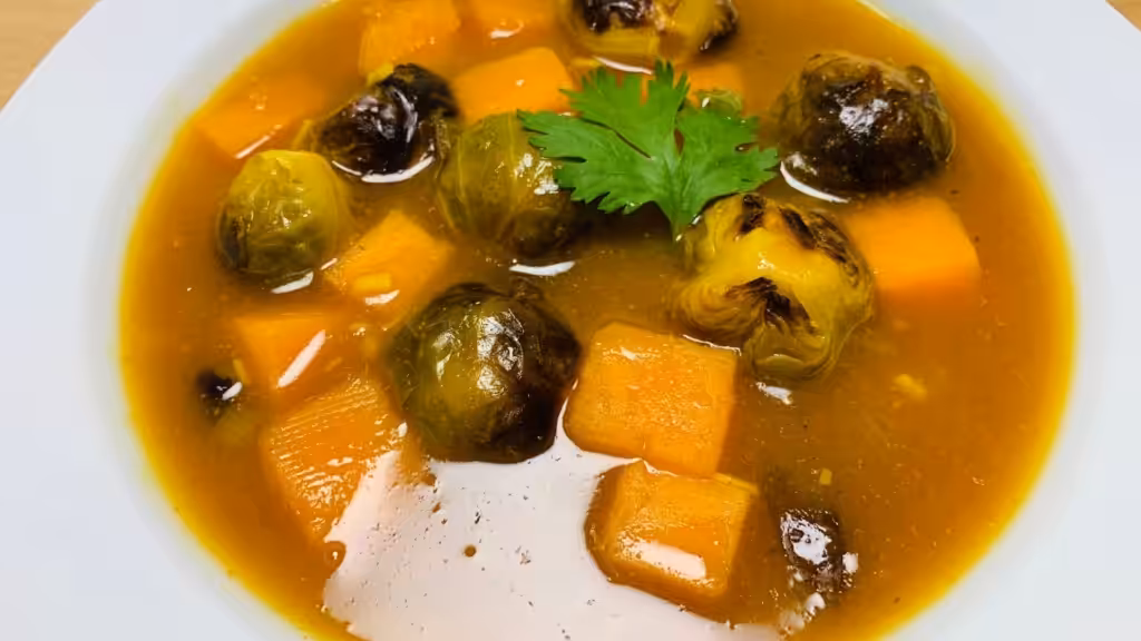 Voeg vervolgens de garam masala, de ahornsiroop en het sap van de twee limoenen toe en meng goed. Voeg vervolgens voorzichtig de krokant gebakken spruitjes toe.