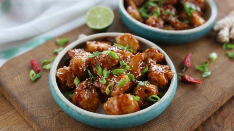 Portion Klebriger Sesam-Blumenkohl