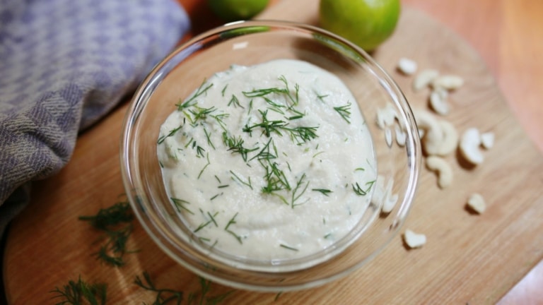 Passt wunderbar als Dip zu Ofengemüse, als Brotaufstrich und auch als Soße für vegane Döner oder Wraps.